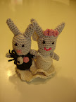 tja, met al dat moois wat ik voorbij zie komen kan ik het niet laten ook wat werkjes van mijn hand te laten zien. Deze twee bruidsparen heb ik in de afgelopen periode gemaakt. Bij de konijntjes was de tijdsdruk behoorlijk hoog (2½ dag, naast een baan, huishouden en twee kleintjes): veel priegelwerk, maar ook veel voldoening. Ook al had ik nog wel een dag pijnlijke vingers en een stramme rug, maar het is gelukt!