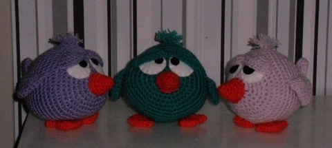 Hier weer een nieuwe creatie. 3 kleine vogeltjes. Ze kijken een beetje treurig. Vast omdat het buiten regent.