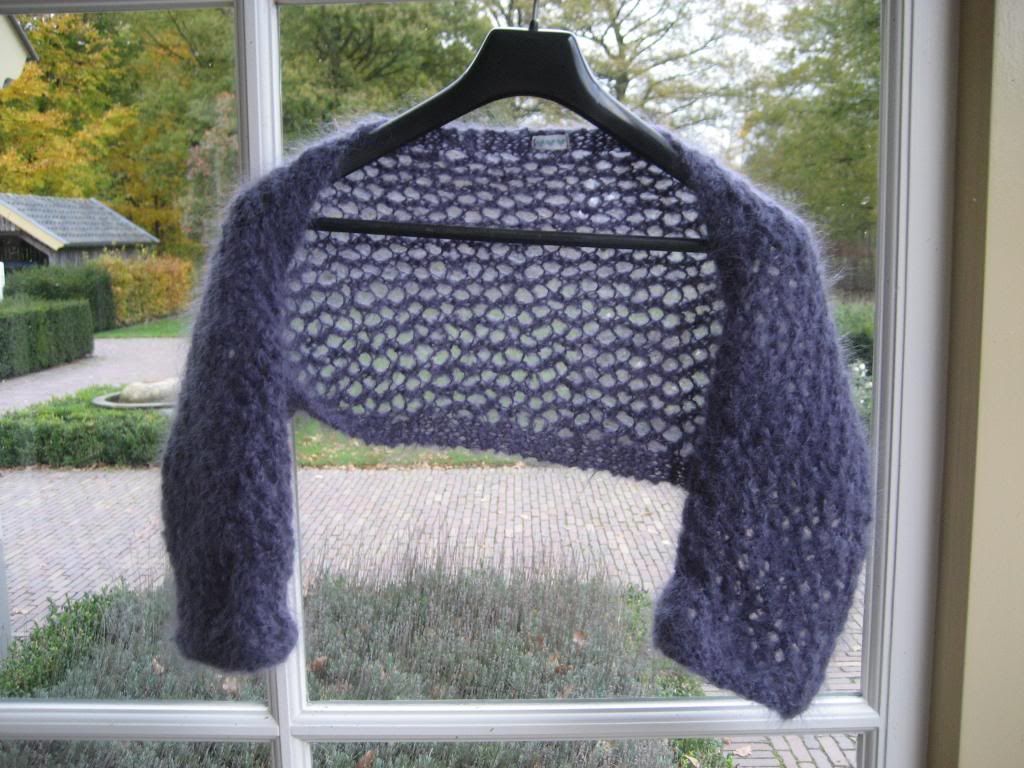 Vorig jaar maakte ik al de sjaal en begon ik met een want, nu heb ik de wanten af! Laat de winter maar komen. Ik ben erg benieuwd in hoeverre de wantjes uitrekken, ik hoop niet te veel ... ![]() Bolero, ook eindelijk af. Eigenlijk voor de zomer, maar ik heb hem wat langer gemaakt tot de wol op was. Al drie dagen aan gehad! Hoera! ![]() ![]() |