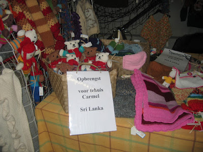 hihi! we zijn net tegelijk met ons verslagje, corry! grappig is dat! de opbrenst is 208euro en de kraam kost 16 euro, houden we 192euro winst over, komen je sjaal van voorverkoop nog bij... Ik nu ook even met de beentjes omhoog, blij te horen dat je veilig weer thuis bent, is toch een heel eind rijden zo allen voor je!!!! |