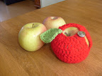 dit appeljasje maakte ik na.v. de link die claire plaatste op 31 maart. vond het zo grappig. nu krijgt mijn dochter die een lang weekendje weg gaat een appeltje met jasje mee voor de orst onderweg.