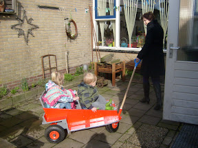 een heel andere hobby heeft mijn man Teake. Hij heeft deze kar gemaakt voor de kleinkinderen om met hen en de hond te wandelen. want Siem is niet zo'n loop liefhebber. en aldoor tillen daar wordt hij te zwaar voor.