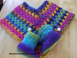 Deze week kreeg ik vanuit Nederland een pakket met het Fenna garen. Natuurlijk moest ik het meteen uitproberen. Voor het tasje wat ik in mijn hoofd had zitten vond ik de kleurenverloop niet mooi, dus heb maar een poncho en laarsjes ervan gemaakt