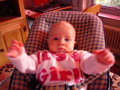 wat een lieffie, oooh zou ze zo willen optillen, fraaie trui trouwens