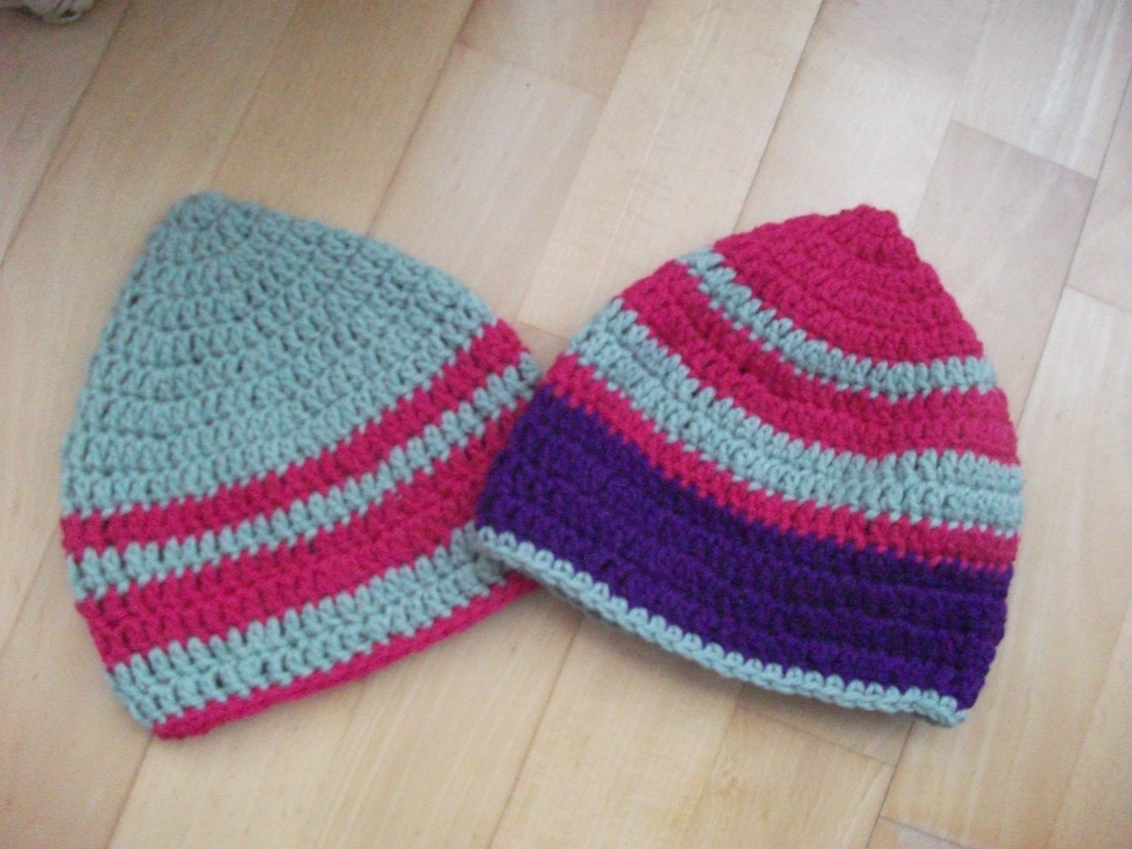Ik heb vandaag ook twee mutsjes gemaakt, maar dan gehaakt. Ik zal morgen even een foto plaatsen