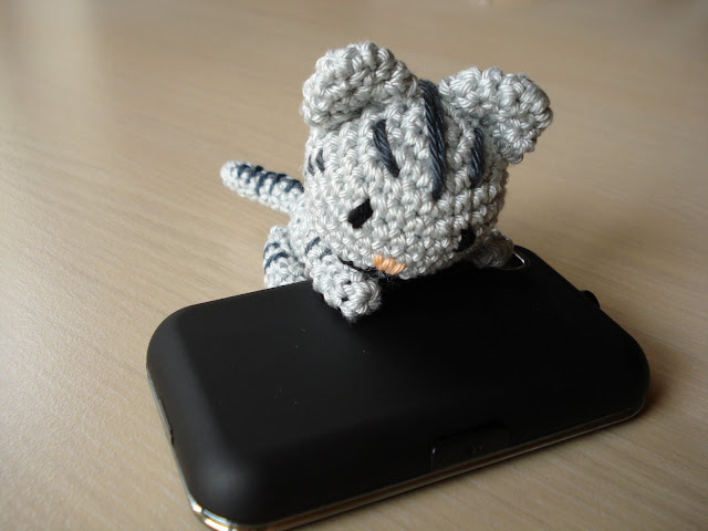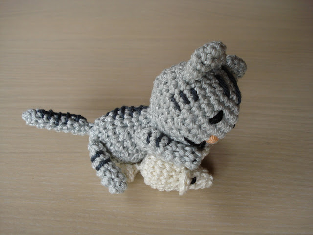 Hier mijn eerste creatie ermee: een klein muisje voor bij de poes (in gewoon catania-garen gemaakt):