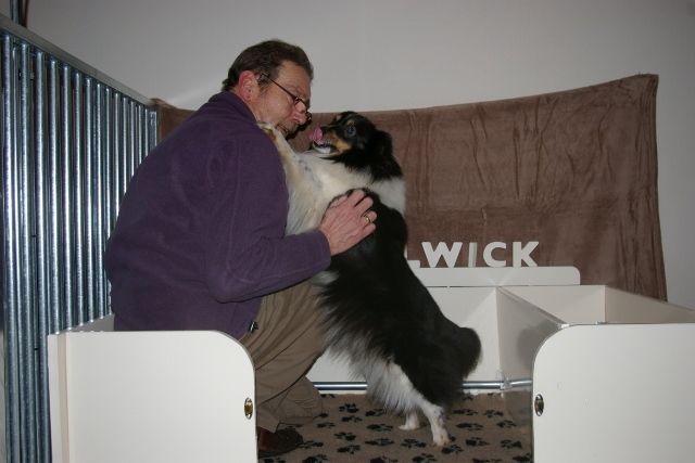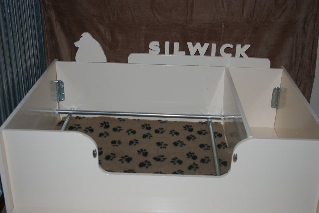 En ik ben supertrots op Wout wat hij gemaakt heeft. Hij heeft hem zo gemaakt dat in de toekomst Guusje (Stabyhoun) er ook gebruik van kan maken, dan hoeft alleen het tussenschot eruit en een ander hoofd en een andere kennelnaam erop.