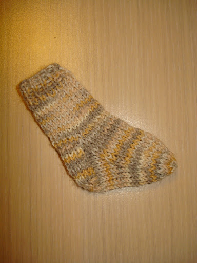 Dit sokje is een creatie van mijn mama, om overschotjes sokkengaren op te gebruiken bedacht ze om er minisokjes van te maken. Zouden we in principe ook een sleutelhanger van kunnen maken :