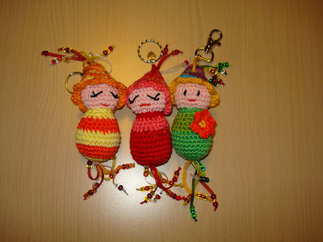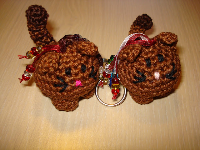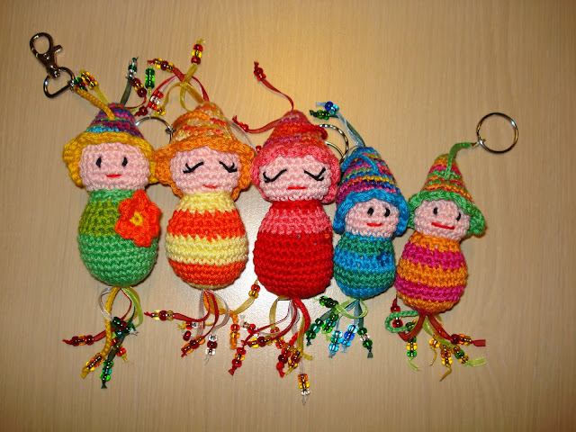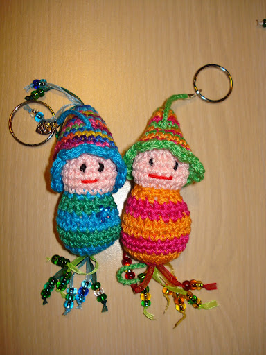 Maar eigenlijk zijn ze best groot om te maken als sleutelhanger, dus heb ik het patroon wat aangepast en kleinere gemaakt: