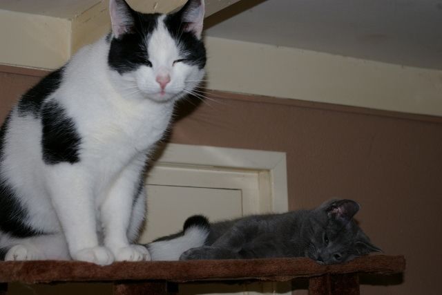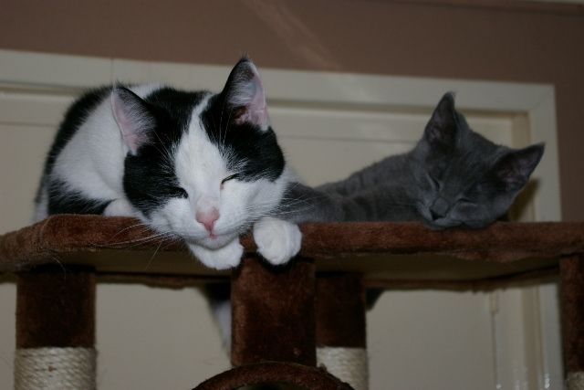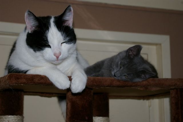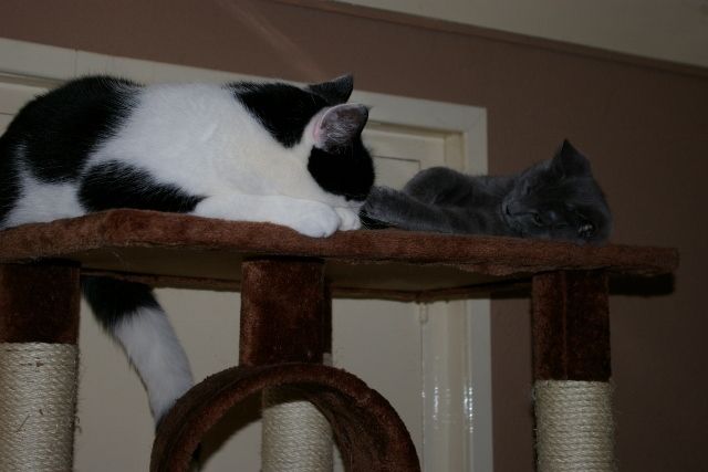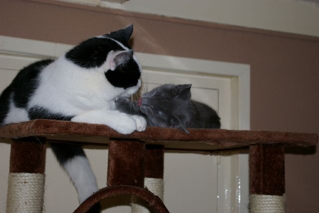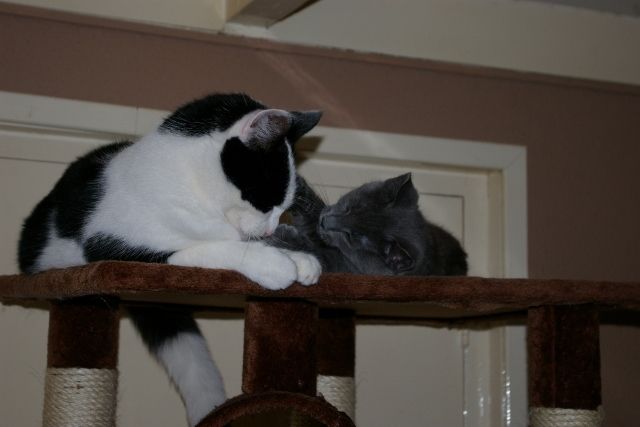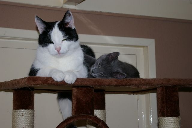 wat een mooii katje is grijsje hopelijk gaat het snel beter ziet er een beetje zielig uit mooi dat de zwart wit kat hem gezelschap houd ziet er zo lief uit