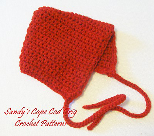 Zoals ik het zie lijkt het me een gehaakte rechthoek die dichtgenaaid wordt, en dan met de naad aan de achterkant van het hoofdje. Iemand enig idee hoe je de maten van de rechthoek zou kunnen bepalen? Ik dacht zelf dat de lengte van de rechthoek ongeveer de omtrek van het gezichtje moet zijn. En dat dat ook ongeveer 2x de 'hoogte' is?