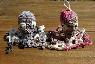 Nixen, ik heb hem gewoon weer voor ..-ste keer uitgetrokken. En ben hem gewoon van het patroon aan het haken. Heb 3 tentakels af, vanmiddag in de tuin verder tentakelen.