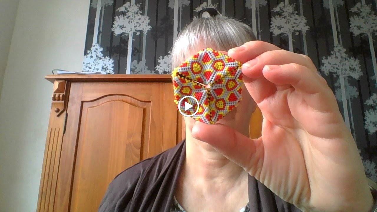 Geen idee hoe je het in het Nederlands noemt. Gemaakt van 11/0 Miyuki Delica kraaltjes. Hij bestaat uit 25 driehoekjes met 4 verschillende patroontjes. Het is een filmpje, ik hoop dat jullie het zo kunnen bekijken.