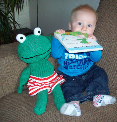 Als kikker en eend je favoriete boek is, dan mag een kikker knuffel natuurlijk niet ontbreken. Kleinzoon Levi vindt kikker erg leuk !!!(om op te vreten dus )