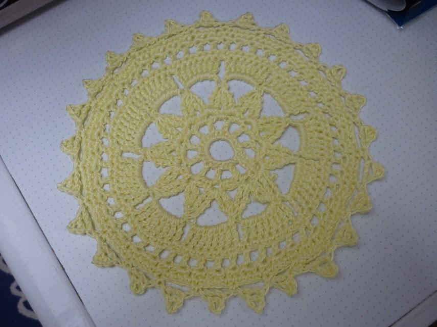 Ik begon deze week zo stilaan genoeg te krijgen van de koude en de winter. Ik zag wat leuke creaties verschijnen voor de lente en had nog een half bolletje zachtgele katoen liggen. Even een doekje gehaakt om in de Paastijd op tafel te leggen.