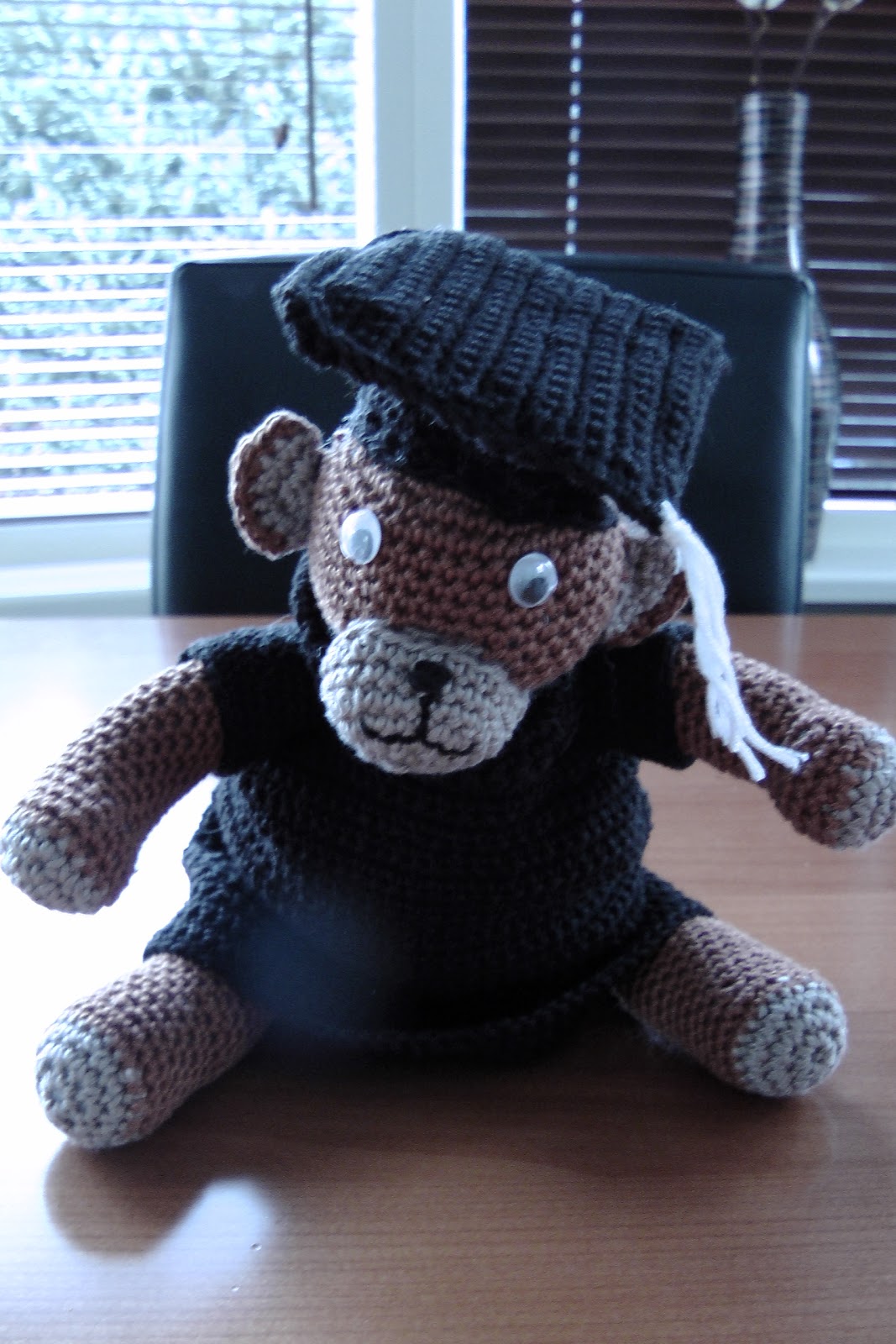 Ik heb hem ook een keer gemaakt en vond hem een beetje tegenvallen. Op de foto is het zo'n lekker knuffelbeer maar die van mij niet. Ik heb hem toen gemaakt omdat mijn dochter was geslaagd dus de bij behorende outfit erbij gehaakt maar die paste voor geen meter. HIj kijkt bij mij ook wel een beetje boos, had toen nog geen andere oogjes hihi.