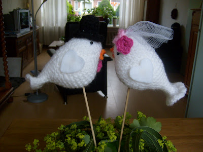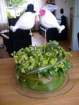 de dochter van mijn vriendin gaat binnekort trouwen. dit leek mij wel een leuk aardigheidje. in een mooi wit of zilver potje met veel vrouwenmantel. eerst maar even pronken in mijn eigen bloementaart