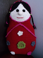 Een aantal maanden geleden heb ik deze Matroeska gehaakt. Het is mijn eerste haakwerk nadat ik wat proeflapjes gehaakt had. Ik had het meteen groot aangepakt want deze Matroesjka is 52 cm hoog.