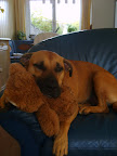 Dan zal het wel het patroon aanpassen worden, want hij ligt het liefst breed uit en lekker warm onder een deken.