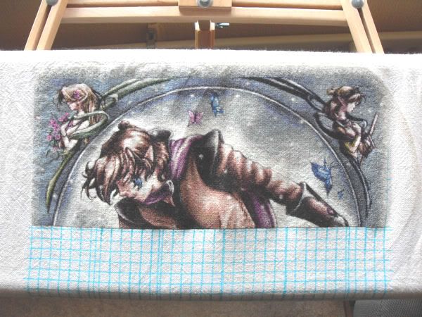 Ik ben er ongeveer 2 jaar geleden mee begonnen, maar ik doe regelmatig ook andere werkjes tussendoor zoals kleinere borduur werkjes en ik wissel elke keer af met die grote lap van die foto van mn hond Amy.