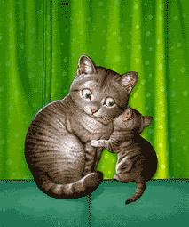 De rode "kater" van onze zoon werd een tijdje gelecen ook wat dikker en voelde zich duidelijk niet lekker, ze dachten dat-ie wormen had. Tot iemand op het idee kwam dat de "kater"wel eens een poes zou kunen zijn en jawel hoor, een week later beviel Gijs van 3 rode en een donkergrijze kitten.