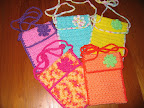 Ik zal deze week nog beginnen met de tasjes. Ik heb begrepen dat de maat en breien of haken niet zo van belang is. Volgens mij heb ik ook nog wel leuke patroontjes van tasjes. Mag het ook een variatie zijn van de tasjes op de foto? Iest met franjes of strikjes of zoiets?