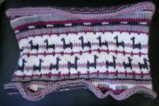 Bedankt voor jullie leuke reacties. Er is al uitleg gegeven over de snood zie ik. Ja dat je hem ook als muts kon maken dat vond ik zo handig. Maar ik heb hem dan ook wel wat langer gemaakt want anders zou hij niet over mijn hoofd passen. Dat deel met beestjes staat maar 1x in het patroon en die heb ik er nog extra op gemaakt. En ik heb dunnere wol gebruikt dan het patroon, dus meer steken en meer naalden gebreid.