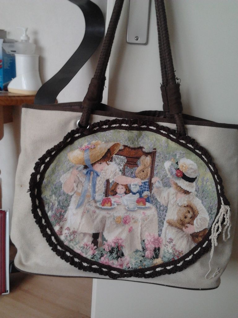 Heb je het borduurwerk van die eerste tas ook gedaan? Lijkt me een monnikenwerk.