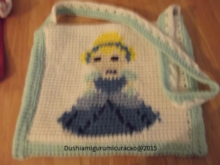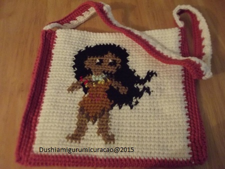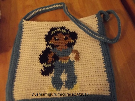 Ja bep, de prints vind ik leuk om te maken, de rest van het tasje vind ik minder leuk :). Komt gewoon omdat ik die met 1 kleur heb gehaakt, dus de volgende keer maar wat meer kleuren gebruiken voor de achterkant