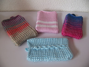 Ik heb een paar telefoon hoesjes af, gemaakt met de Tunische "knit-stitch", ik vond het heel erg leuk om te maken, en het gaat lekker snel.