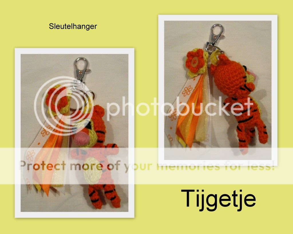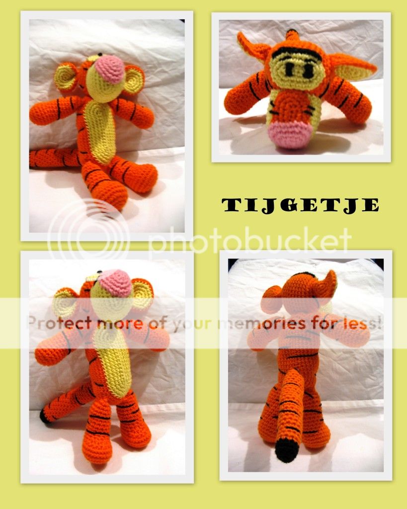 Vandaag (of eigenlijk al gisteren... want het is al na 12en...) was mijn vriendin jarig. Zij is helemaal gek van Tijgetje. Ik heb dus voor haar een sleutelhanger en een knuffeltje van Tijgetje gemaakt. Ze was er super blij mee.