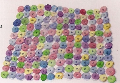 Puffs Baby BlanketIn the 1930s there was a craze for making a decorative patchwork from gathered circles of fabric, called Suffolk puffs or yo-yos. This pretty baby blanket echoes that style with ingeniously constructed, double ' thickness, two-round crochet puffs in pastel shades. SIZE (54 x 63cm) YOU WILL NEED Approximately: 35g of pure wool or wool rich 4ply yarn in pink. 60g same in each of green and blue 45g same in each of mauve, lilac and yellow 50g same in turquoise 4.50mm (US G/6) and 2.50mm (US C/2) crochet hooks TENSION Each puff measures approxirnately 4.5cm ) across, using 4.50mm (US G/6) hook. Change -hook size, if necessary, to obtain this size puff. NOTES • you can vary the amount of puffs you make in each colour as you wish or invent your own colour scheme but for the effect in the picture you'll need to make 17 puffs in pink, 31 in green, 30 in blue, 22 in mauve, 22 in lilac, 25 in turquoise and 21 in yellow. -The puffs are worked using a larger hook than usual for 4ply yarn so that the double thickness motifs are lightweight. -The decreases on the second round fold naturally to the wrong side. for a larger blanket :- Simply make more puffs and assemble them to the size you want. To help estimate the amount of yarn you'll need, allow acoroximately 20g for each extra 10 puffs. puff Using 4.50mm (US G/6) hook, make 5ch, ss in first ch to form a ring. 1st round (RS): 5ch, working over yarn end, make 19trtr in ring, ss in 5th ch. 20 sts. 2nd round: 2ch, leaving last loop on hook work l tr in next trtr, yrh and pull through 2 loops on hook, (2trtog) 9 times, ss in 2nd ch. Leaving a long end, fasten off. Make 168 puffs. to make up Darn in and trim starting end. Using long end, catch chain edge of 2nd round to WS of first round a little way from the centre. opening. Arrange puffs in a rectangle, 12 motifs across and 14 motifs down, on a piece of fabric. When you are happy with the arrangement, pin puffs in place. If you prefer; you could simply join puffs at random. 1st line of puffs: Using 2.50mm (US C/2) hook and with WS facing, join appropriate colour yarn in a trtr of first puff. With RS together, hold 2nd puff behind. Joining row: Inserting hook in same trtr as join and in corresponding trtr of 2nd puff together, work 1dc,(1ch, 1dc in next trtr of each motif together) twice. Fasten off. Leaving 7trtr at each side free, join 3trtr of 2nd puff to 3rd puff. Continue joining puffs in this way until 12 puffs have been joined. 2nd line of puffs: Count 5trtr back from join in 1st puff and join first 3 of these 5trtr to13th puff in the same way. leaving 2trtr between joins each time, join 14th puff to 13th and 2nd puffs. Continue joining puffs in this way until 14 lines of puffs have been completed. Darn in ends. If necessary, press very lightly on WS. is het dit ??????? het is wel engels maar misschien kan iemand het voor je vertalen |