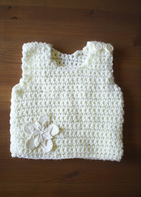 Voor kleindochter Lieke is maatje 50 nog te groot...Van een shirtje maat 44 heb ik een papieren patroon gemaakt en daarmee dit hesje op maat gehaakt.De bloem is gemaakt van vilt en geborduurd met pailletjes....3 weken oud en met deze outfit al helemaal klaar voor de kerst....