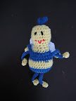 Geinspireerd door jullie variaties en de link van Roos met zoveel mooie gehaakte creaties heb ik ook een variatie gemaakt op mijn tuimelaartje. Die bij zoveel van jullie dikbuikje heet.