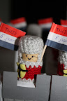 Weer aan het knopen. :) Ondertussen de traktaties van mijn jongste voor de eerste schooldag onder de motto: Je kunt niet vroeg genoeg zijn