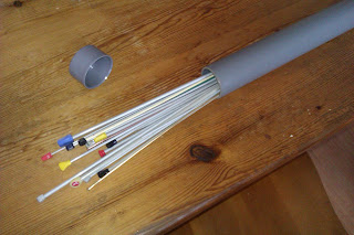 ik bewaar mijn breinaalden in een grote pvc pijp koker