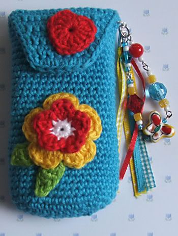 Wat een probleem, persoonlijk heb ik knoopjes gehaakt. En die op mijn eigen mobieletelefoonhoesje gemaakt, met een opening in het flapje. Maar ik zal even kijken op de markt of ze ook gekleurd klitteband of een andere oplossing hebben. |