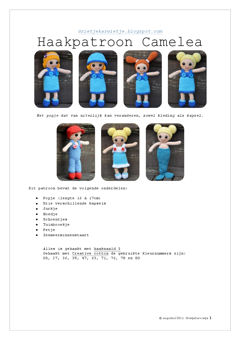 gehaakt popje die je met verschillende kleertjes /pruikjes telkens opnieuw kan aankleden Het was/is een koop patroon ook een zeemeermin staart