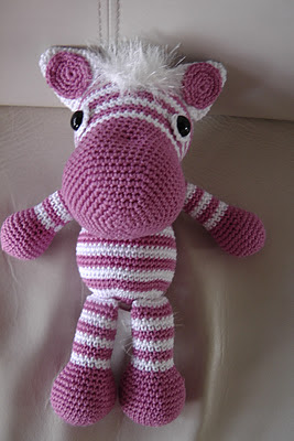 Ja, als je eenmaal in de boekjes van Christel Krukkert aan het kijken bent is de verleiding groot om ook deze zebra te maken. Alleen deze keer niet in het zwart wit maar een in het roze. Misschien binnenkort ook wel een in het blauw, dan zijn ze leuk om als kraamkado weg te geven.